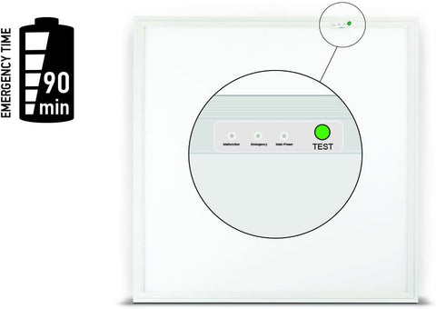 • EMERGENCY PACK INCLUDED: No need to buy separately, the emergency battery back-up pack comes with the LED troffer panels to make sure you will not go dark when power off. The emergency pack automatically switches on when sudden blackout and powers the fixture for up to 90+ minutes with 20% original output